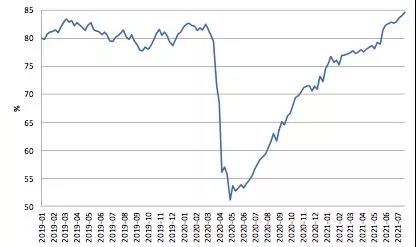 图5 美国粗钢产能利用率(当周值)