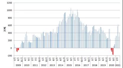 图2 中国粗钢净出口当月情况